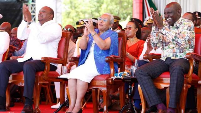 President Kenyatta and his deputy William Ruto led by example during Sunday’s Heroes’ Day celebrations in the coastal city of Mombasa, wearing Kenyan-made attires.