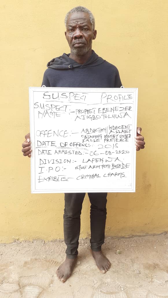 Men of ogun state command have arrested one prophet Ebenezer Ajigbotolwa, founder and general overseer of The Church of Lord Olomore Abeokuta for defiling and impregnating two under age sisters (names withheld).